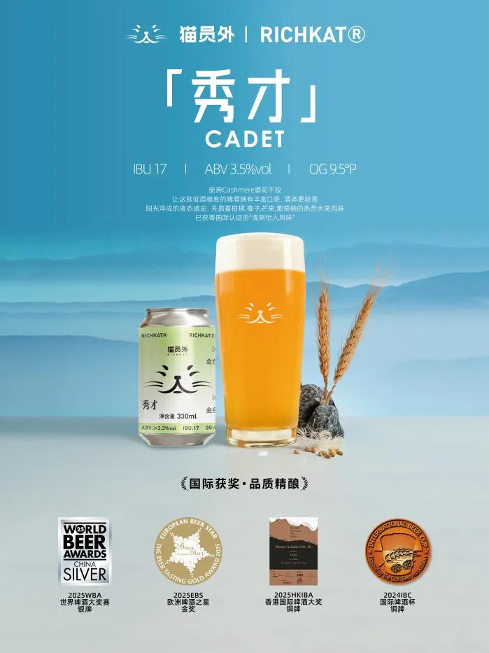 From Guangdong to the world stage, RICHKAT achieved remarkable success in 2025: winning Gold at the European Beer Star for Xiucai - English Golden Ale, and securing four "Country's Best" awards along with 4 Gold and 4 Silver medals at the World Beer Awards, making it one of the Chinese craft beer brands with the most accolades that year. These achievements further solidify its leading position in both the Chinese craft beer taproom market and international competitions.